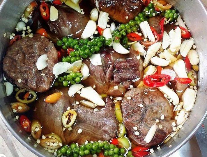 Nguyên liệu bò ngâm với nước mắm tỏi, ớt, tiêu xanh: